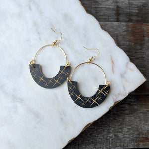 Remix Hoops - Matte Black + Gold Starburst - Acrylic Earrings