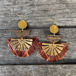Taylor - Brown Basketweave - Leather + Brass Statement Earring