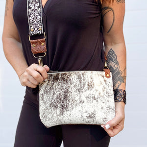 Go Small Zippered Crossbody - White Brindle with Fancy Strap