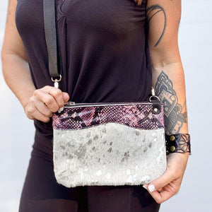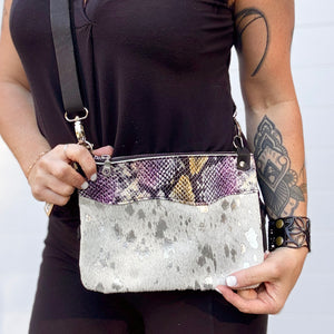 Go Small Wave Zippered Crossbody - Silver Acid Wash + Purple Snake