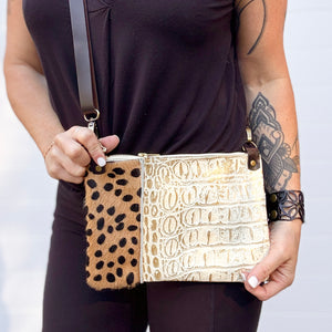 Go Small Miscellany Zippered Crossbody - Cheetah + Gold Croc
