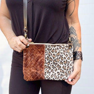 Go Small Miscellany Zippered Crossbody - Brown Basketweave + Leopard