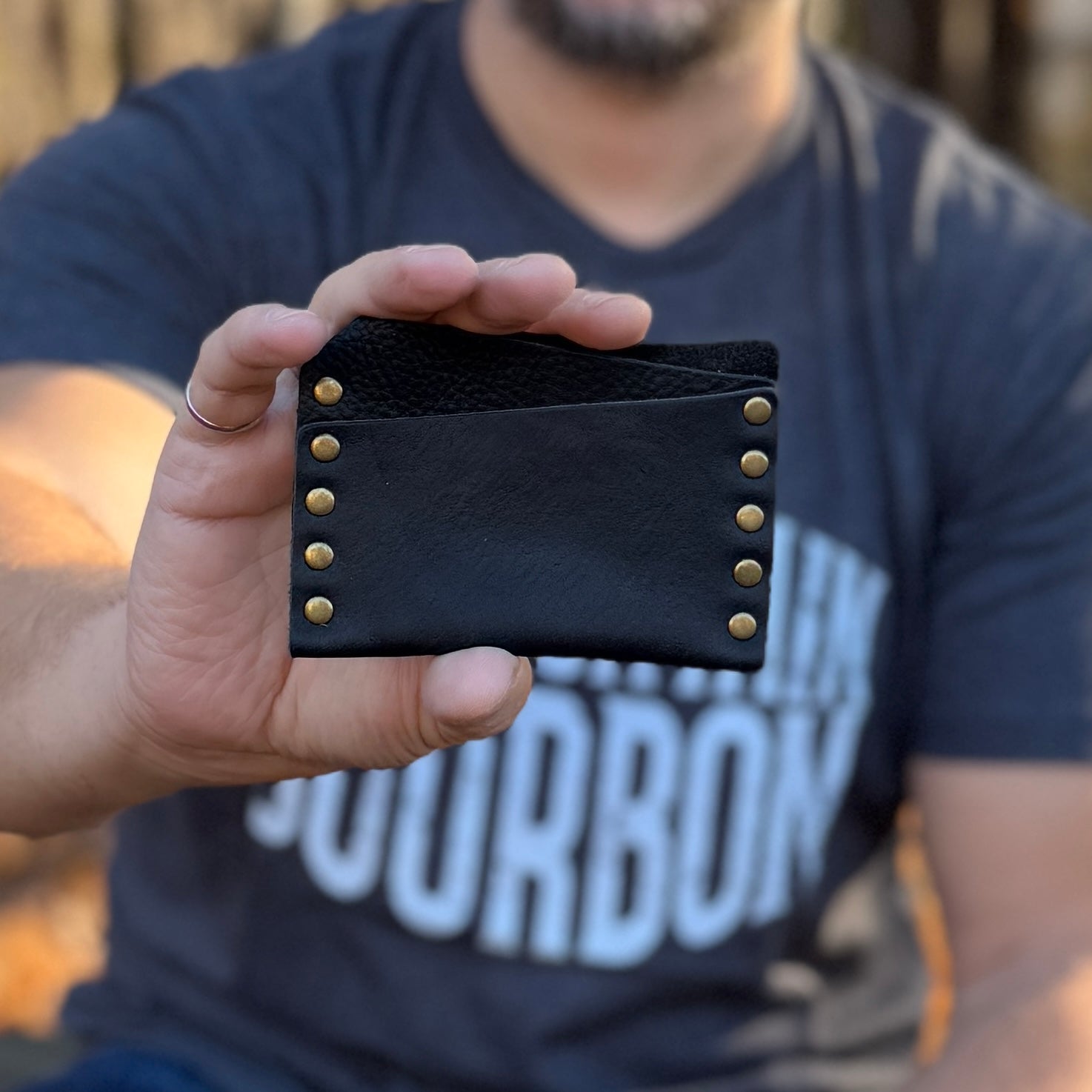 Our unisex card wallets are the perfect size! They feature a slimline design and fit a few cards in the front and cash folded in half in the back. Perfect for everyone.