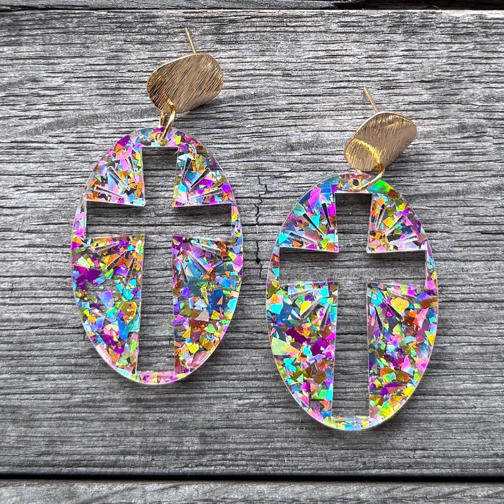 Hoppy Easter - Cross Statement Earring - Disco Glitter