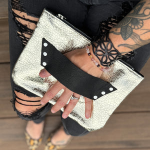 [raleigh leather] Mini Clutch - Champagne Crackle with Black