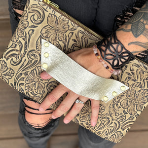 [raleigh leather] Clutch - Brown Floral Embossed with Champagne
