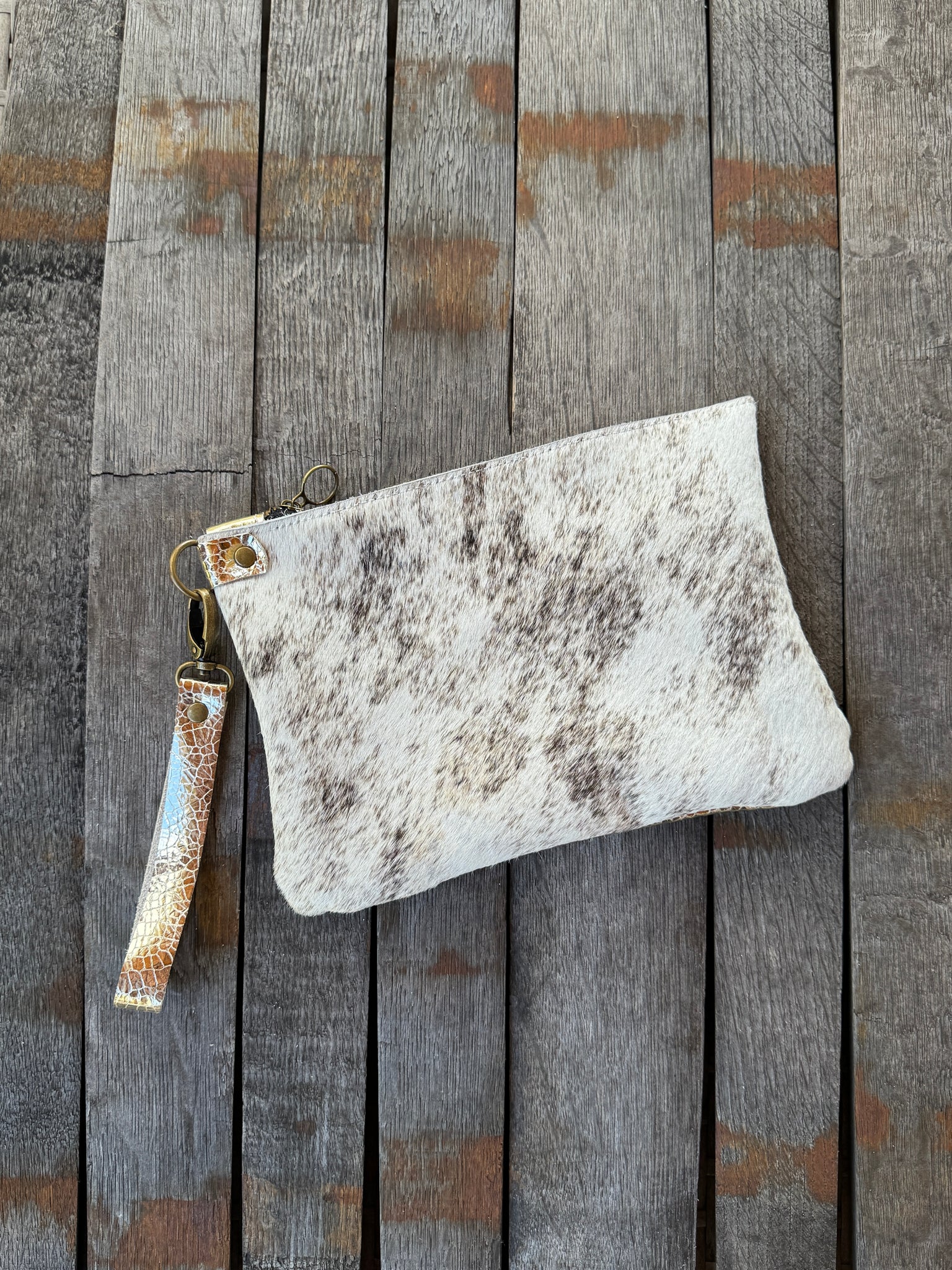 Handmade leather wristlets. This larger wristlet measures  10” wide x7” tall with YKK zipper and matching detachable wrist strap. These wristlets are large enough to fit most your phone plus a small card wallet and your keys!