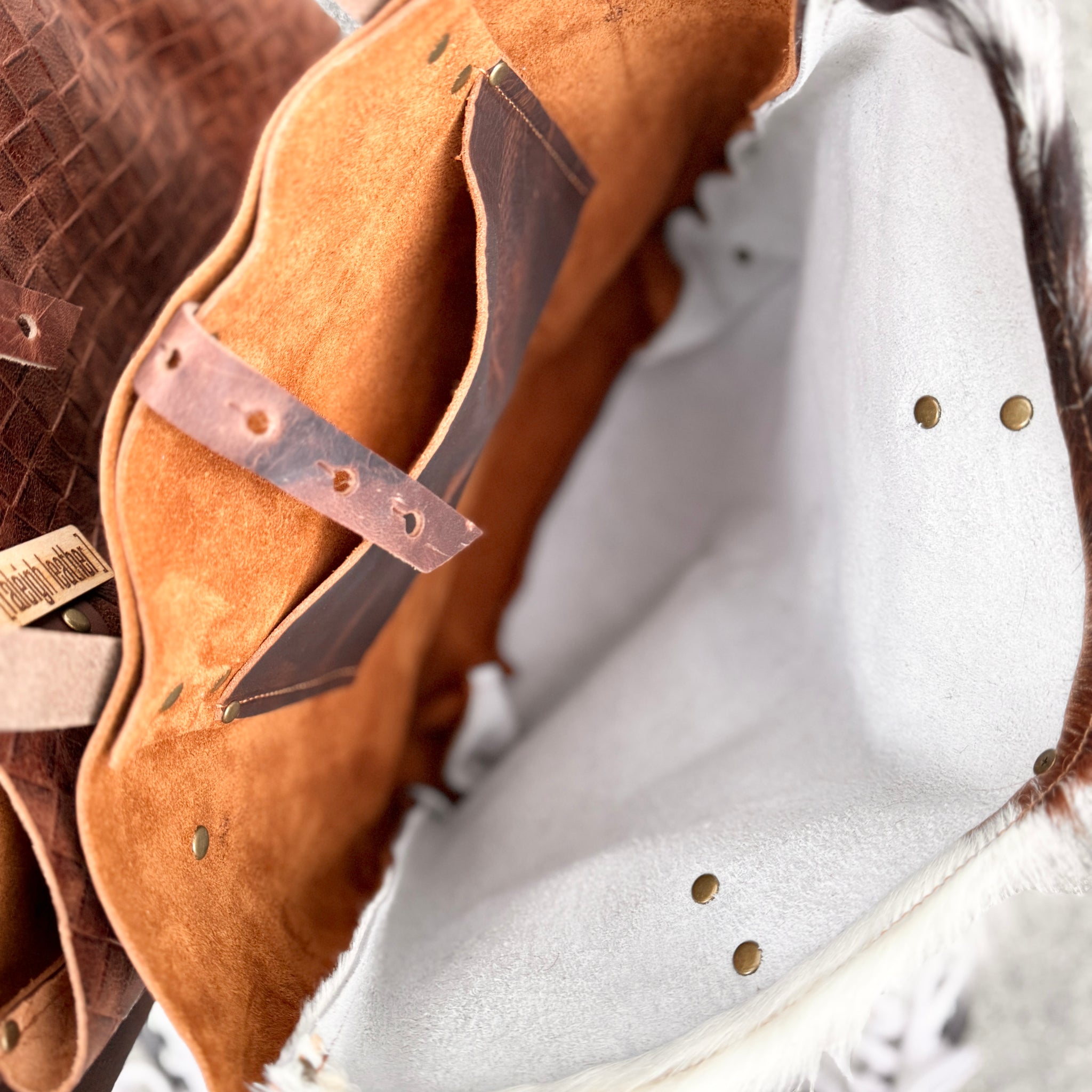 Note that each bag is unique, as they are made from full grain leather. Bags may feature small blemishes or scars from the life of the animal and are considered a selling feature. This type of leather will wear in and look even more beautiful with use and requires very minimal, if any, upkeep.