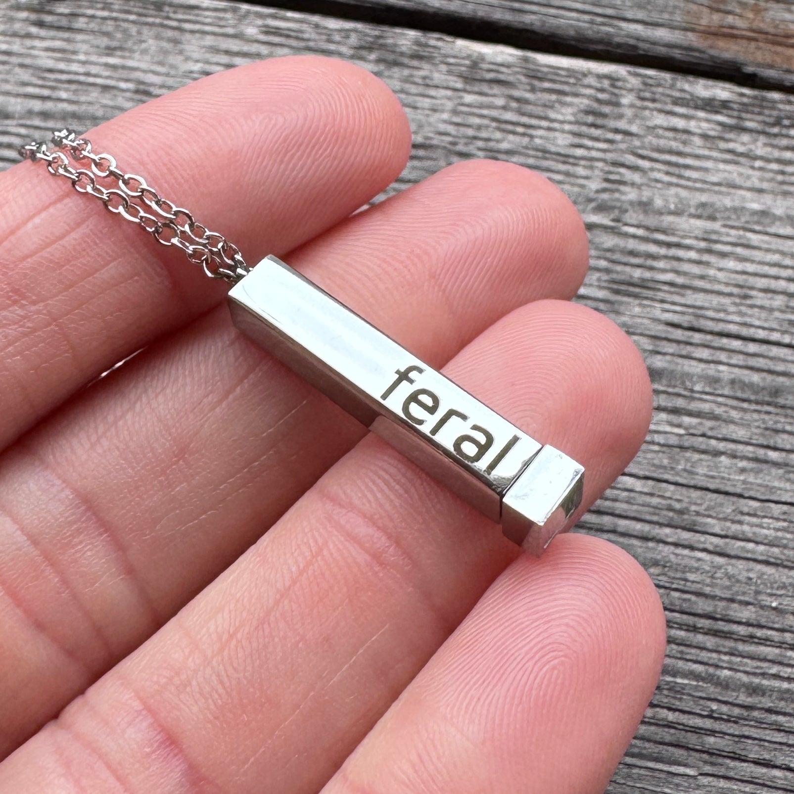 A sweet little necklace with a not-so-sweet secret: feral as fuck.